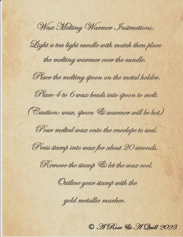 A rich rosewood wax melting warmer, a tea light candle & rose gold spoon with wood handle help to create exquisite wax seals with the lovely Rose Gold wax beads. A Vintage scroll containing the wax melting directions is tied with jute twine & black tip wooden matches with striker are also included.