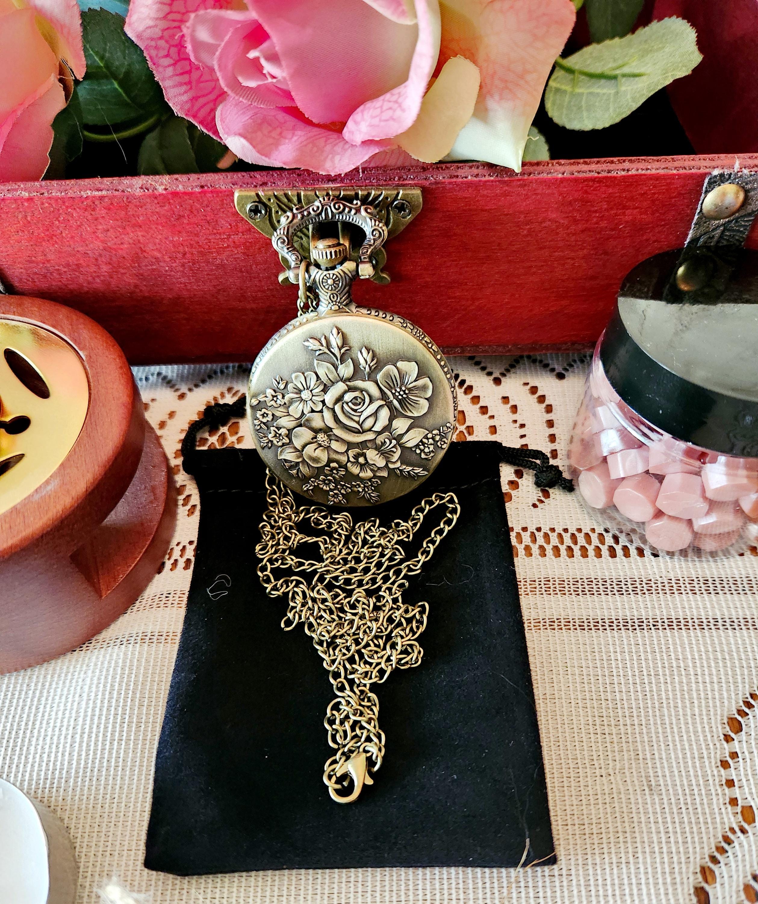 A Ladies Vintage Rose Floral necklace watch is a Lovely Charm of By Gone Days ~~~