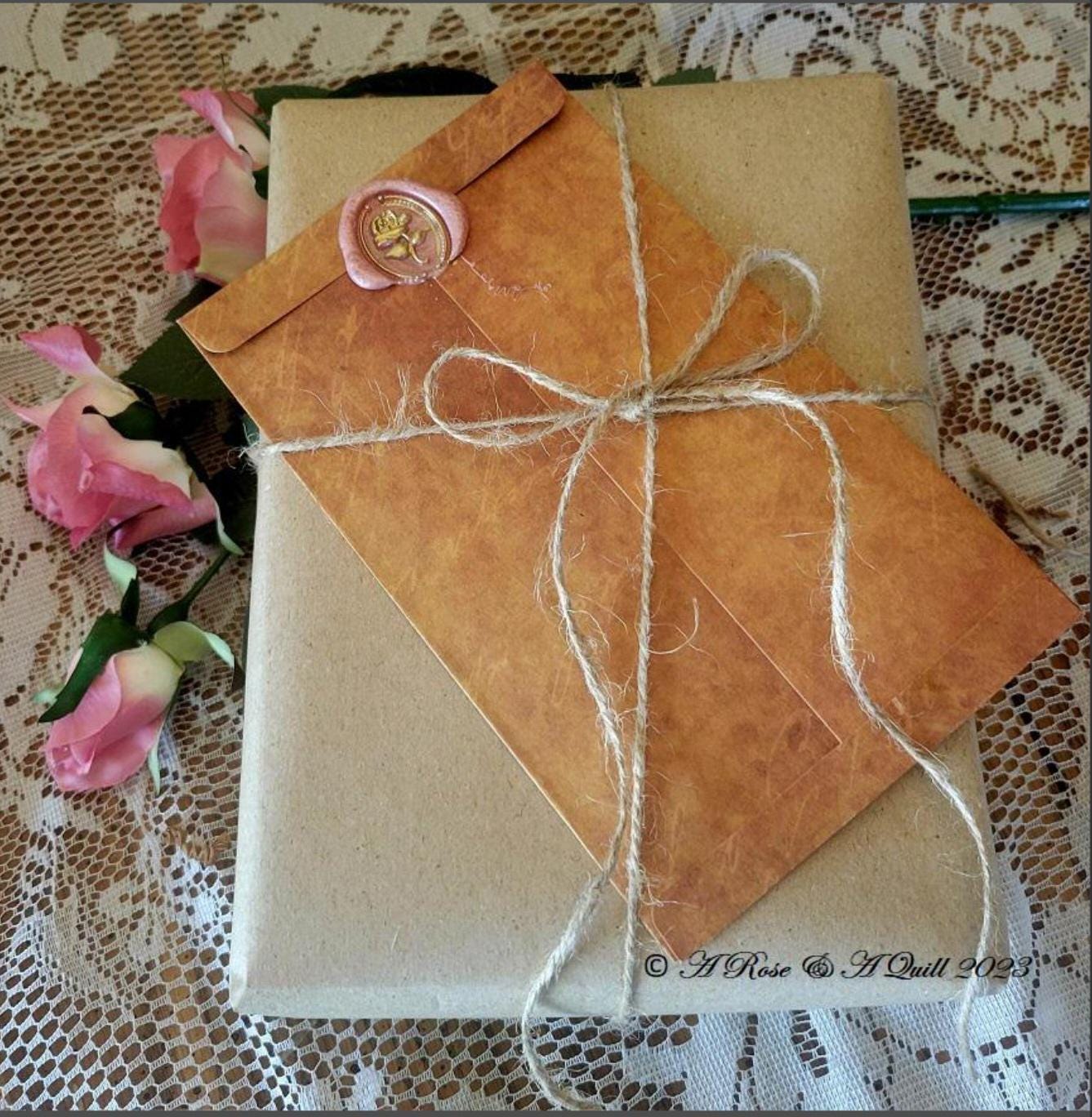 Your Vintage Rose Floral Monogram Stationary gift is wrapped in Vintage Kraft gift paper with your Personalized letter& envelope tied with twine.